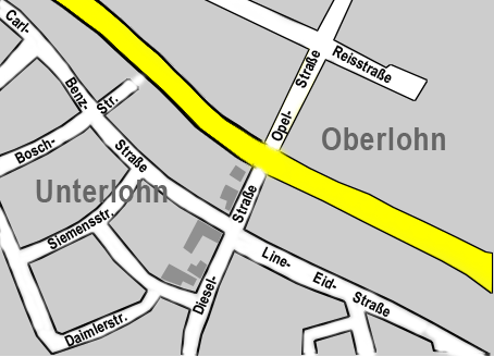 bis rechts die Rudolf-Diesel-Strasse abzweigt. Wenn Sie der Strasse ca. 200 m folgen, finden